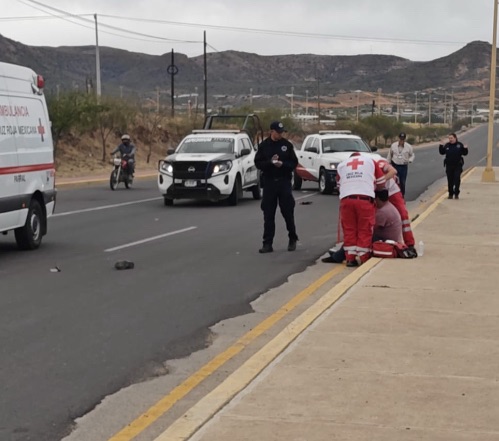 Un motociclista resultó lesionado de consideración, luego de verse involucrado en un accidente en la vía corta a Chihuahua, entre los campos 40-60 y los accesos a La Fortuna.