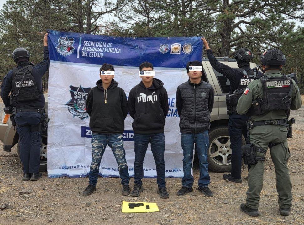 Tras atender un reporte emitido a la línea de emergencia 9-1-1 que alertaba sobre la presencia de personas armadas en la zona, elementos de la Secretaría de Seguridad Pública del Estado (SSPE) aseguraron a dos masculinos y una femenina en la carretera a Rocheachi, en Guachochi.