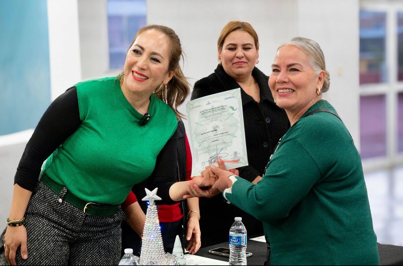 Durante la entrega, la presidenta del DIF Municipal, Nora Carrillo de Calderón, subrayó la importancia de acercar capacitaciones a las colonias para que más personas tengan acceso a herramientas que fortalezcan sus habilidades. Destacó además la dedicación y constancia de las alumnas y alumnos, quienes culminaron satisfactoriamente su proceso formativo.