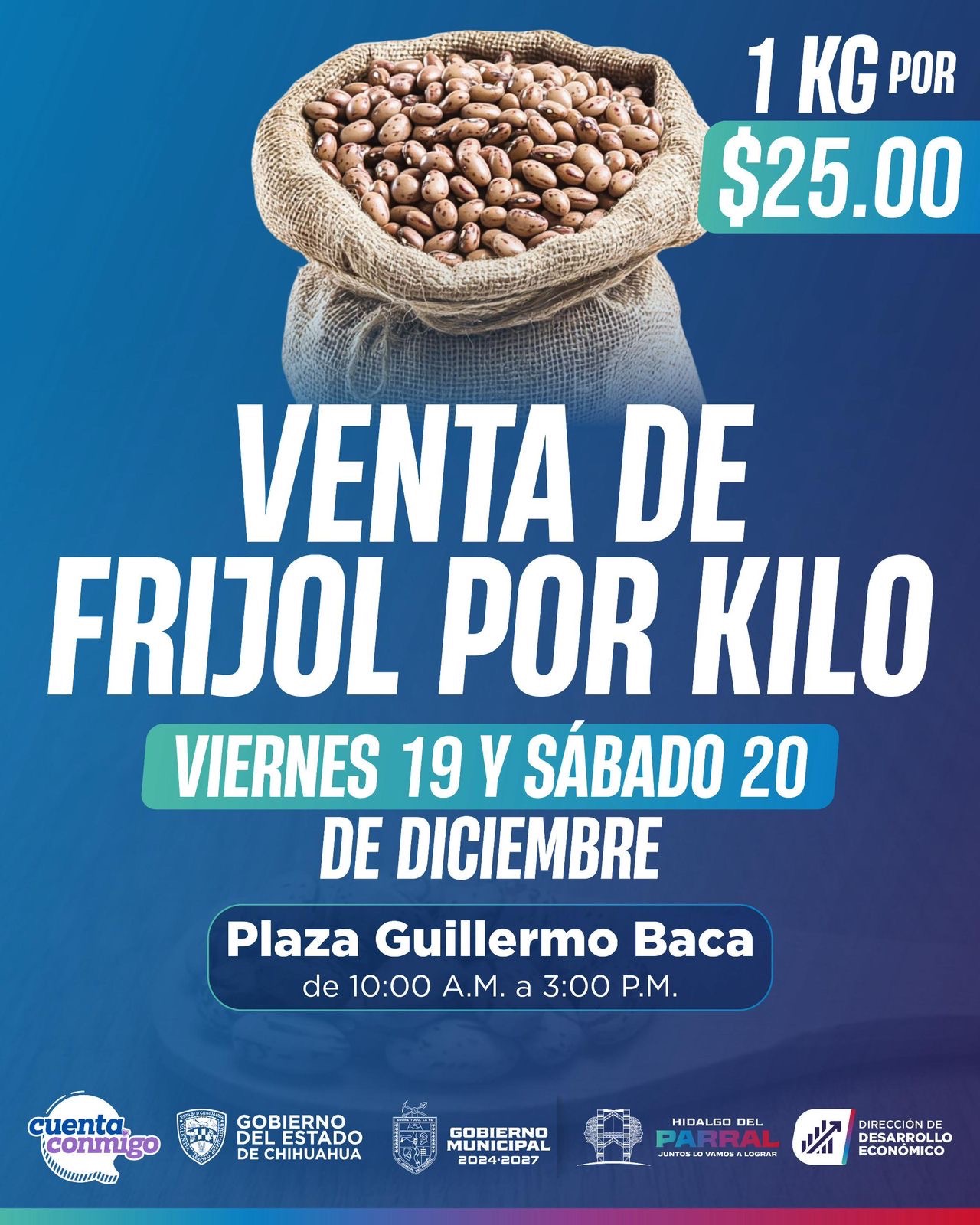El Gobierno de Parral, en coordinación con el Gobierno del Estado, informa a la ciudadanía sobre la realización de una venta especial de frijol a precio accesible, con el objetivo de apoyar la economía familiar y facilitar el acceso a productos básicos en los hogares parralenses.