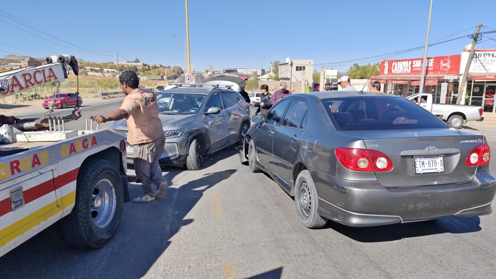 Se trató de una camioneta de la marca Chevrolet, línea Tracker, color gris, de reciente modelo, la cual al salir del fraccionamiento San José para incorporarse a la vía corta, omitió el alto correspondiente.