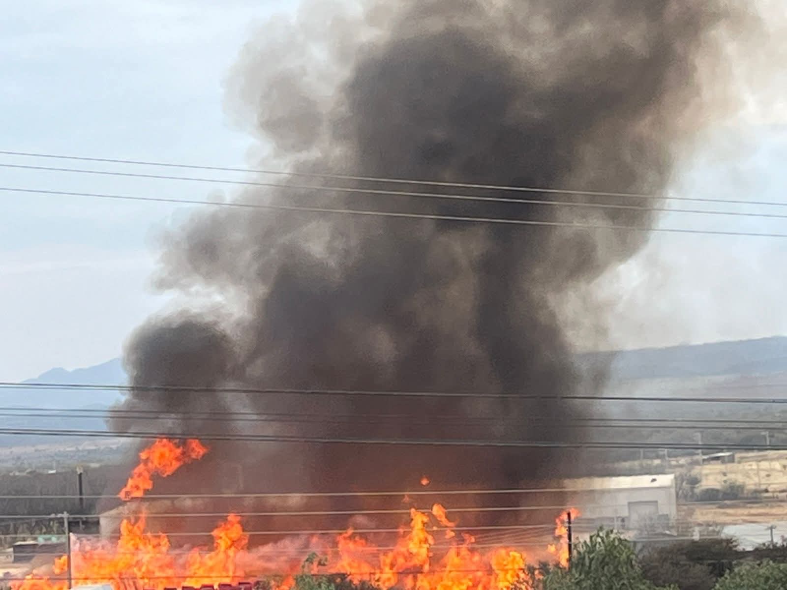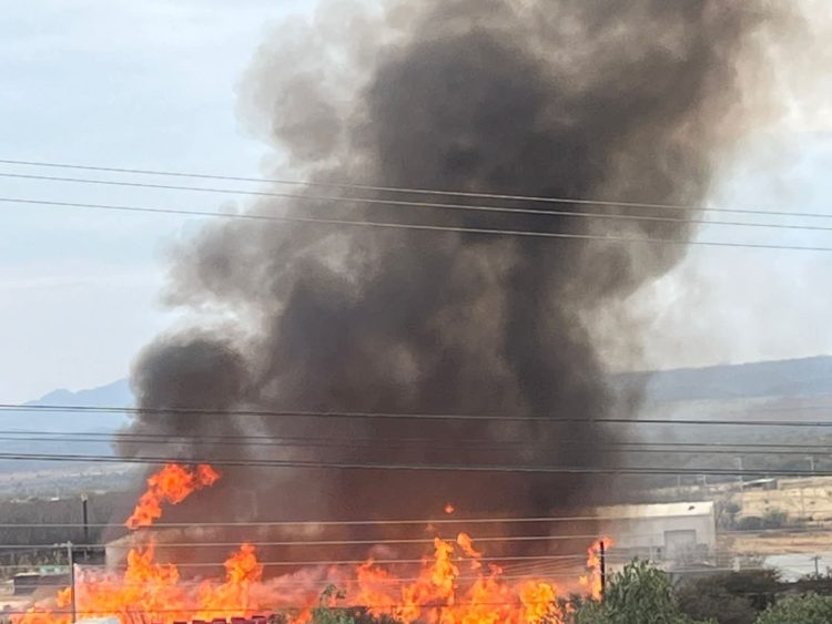 Un impresionante incendio en un aserradero en la carretera a Santa Bárbara deja pérdidas millonarias en el negocio; reportan maquinaria y vehículos dañados por el fuego.