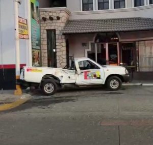 Al bajar la avenida Independencia, el conductor perdió el control del volante, chocando contra una camioneta pickup marca Nissan, línea NP300, color blanca, la cual se encontraba estacionada.