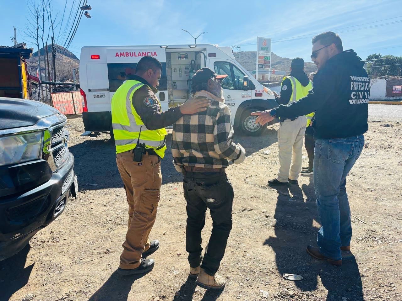 Posteriormente, se estableció comunicación entre los coordinadores de Protección Civil municipal y estatal, lo que permitió activar de manera inmediata los protocolos de colaboración interinstitucional. Derivado de ello, la Coordinación Municipal de Protección Civil y Bomberos de Parral inició el operativo correspondiente para la atención del caso y la canalización adecuada del adulto mayor.