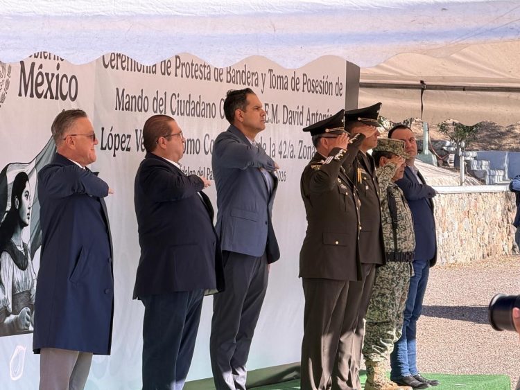 El secretario de Seguridad Pública del Estado, Gilberto Loya Chávez, acudió durante la mañana de este 6 de enero a la toma de posesión del cargo y protesta de bandera del nuevo Comandante de la 42 Zona Militar, el General de Brigada de Estado Mayor, David Antonio López Velazco, quien asume la responsabilidad de continuar con las labores de seguridad en la región.