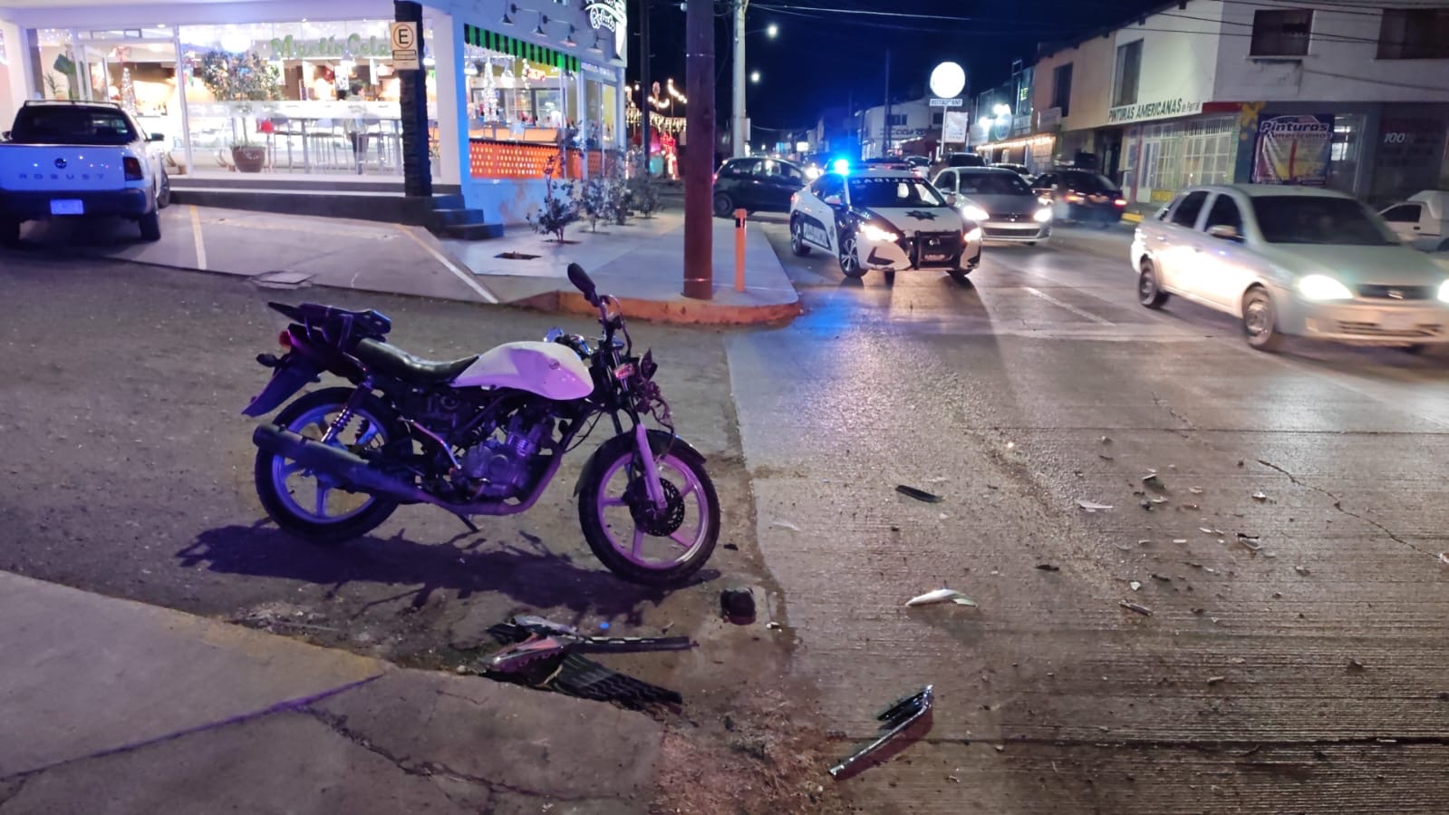 Los hechos involucraron un vehículo de la marca Chevrolet, línea Malibú, de color oscuro y una motocicleta de color blanco, movilizándose una ambulancia y elementos de vialidad al lugar del percance.