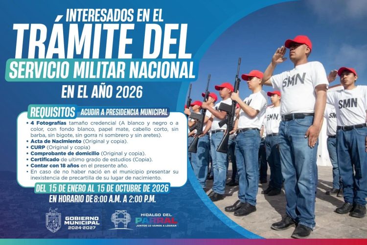 El Gobierno de Parral, encabezado por el alcalde Salvador Calderón, invita a todos los jóvenes interesados a realizar el trámite del Servicio Militar Nacional 2026, como parte del compromiso cívico y la responsabilidad ciudadana que fortalece la participación de la juventud en la vida pública del país.