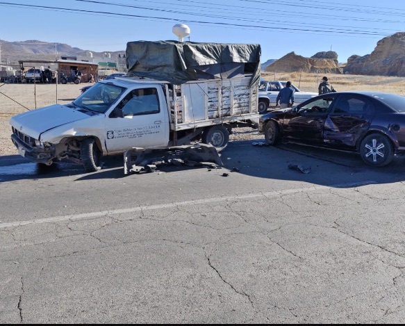 Fuerte choque entre 2 unidades en la salida a Santa Bárbara dejó como saldo cuantiosos daños materiales; paramédicos atendieron a 2 personas, pero no requirieron traslado a un hospital.