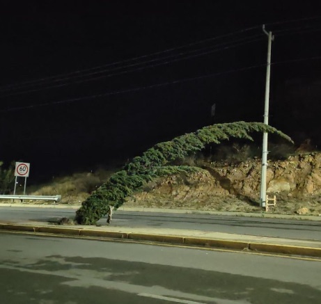 En el lugar no se localizó algún vehículo chocado, sin embargo, una de las arboledas del camellón central, se encontraba a punto de caer hacia la cinta asfáltica.