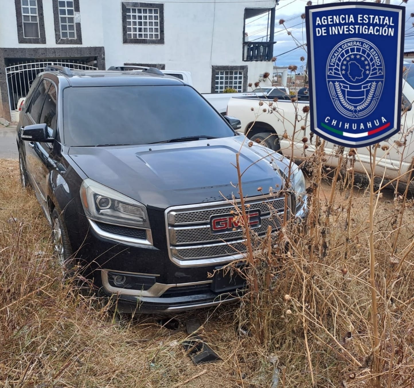 Elementos de la Agencia Estatal de Investigación (AEI), recuperaron una camioneta de la marca GMC, línea Acadia, modelo 2014, de color negro, que fue robada el 09 de noviembre de 2025, en la carretera vía corta Chihuahua – Parral, a la altura del municipio de Satevó.