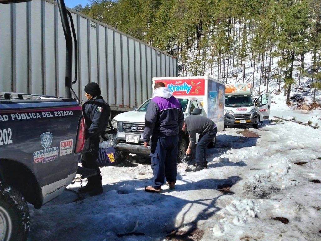 Afortunadamente tras las nevadas, no se han registrado incidentes mayores por la circulación vehicular, únicamente se reportan derrapes y salida de camino de vehículos por el congelamiento del pavimento.