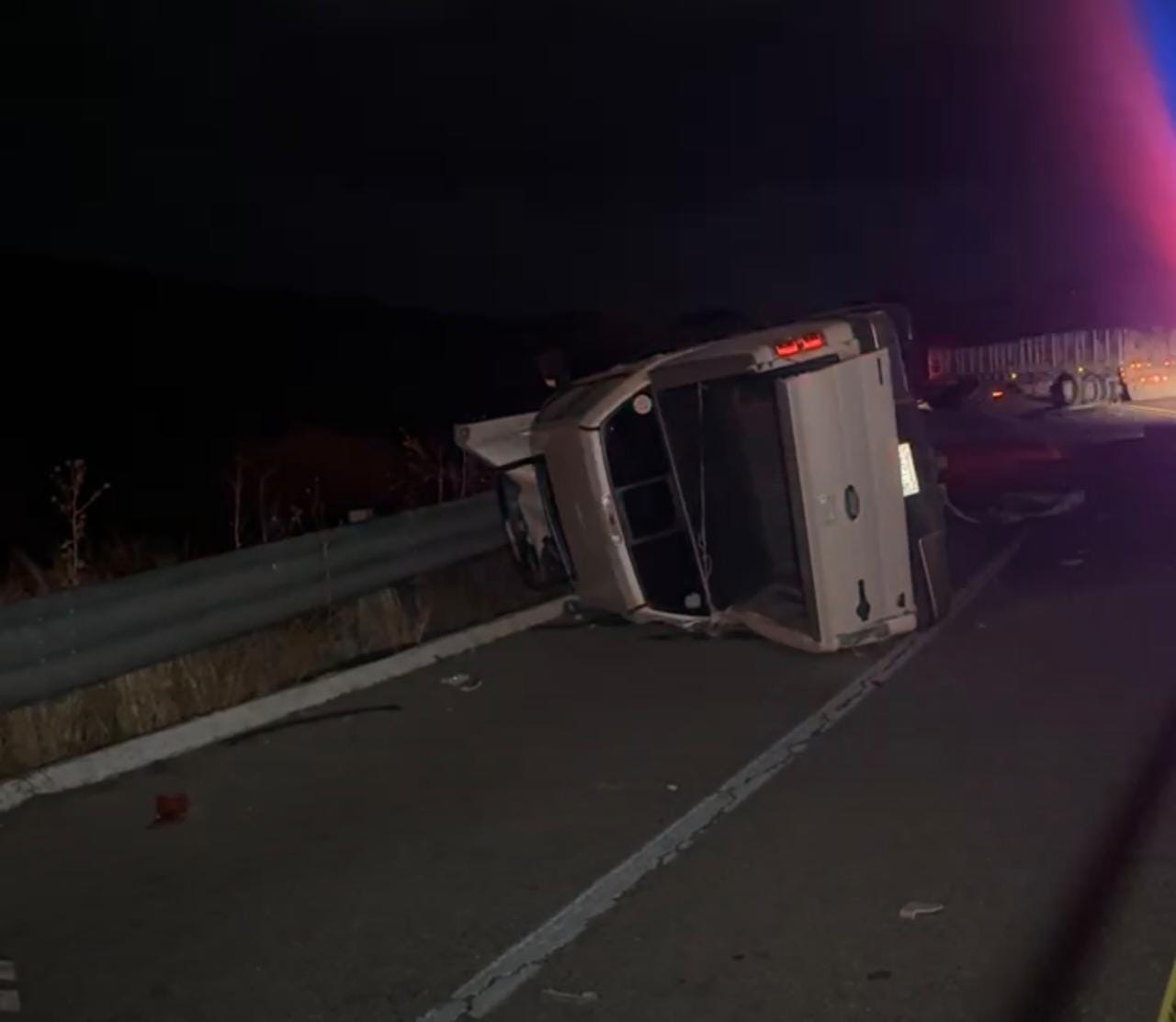 Asimismo, metros más adelante se localizó una camioneta pickup marca Ford, doble cabina, color blanca, modelo aproximado 2010, la cual estaba volcada sobre su costado izquierdo.