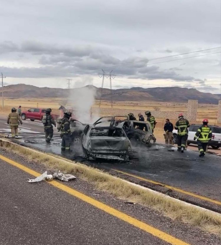 Luego de que circularan en redes sociales los videos de un incendio de dos vehículos, tras impactarse en la carretera Chihuahua a Cuauhtémoc, se confirmó la muerte de tres personas que fallecieron calcinadas en el lamentable hecho.