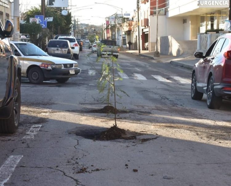 Una acción poco común, pero cargada de mensaje, volvió a poner en el centro del debate el mal estado de las vialidades en Parral. El regidor Vicencio Chávez plantó dos arbolitos dentro de los baches ubicados en la calle Zaragoza, a la altura del cruce con Eugenio Cintrón, gesto que de inmediato captó la atención de automovilistas y peatones.