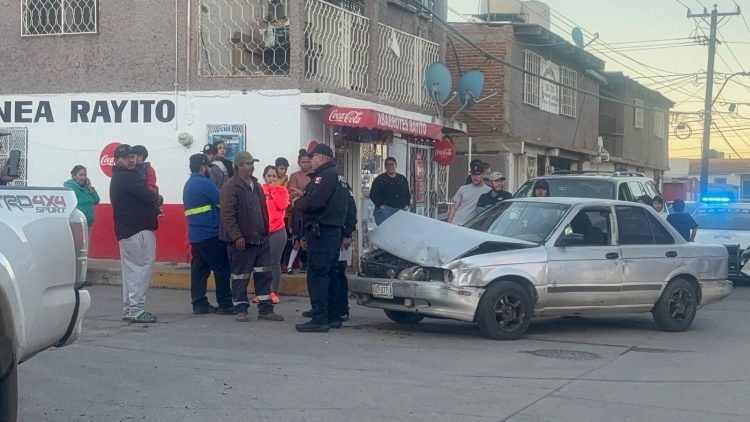 Los hechos ocurrieron en la intersección de la calle García Naranjo y Miguel Trillo, donde un vehículo Nissan Tsuru de color gris impactó en un costado a una camioneta Tacoma de color blanco.