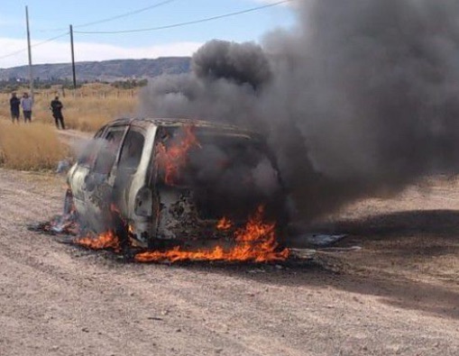 Al llegar al sitio, los bomberos encontraron la camioneta envuelta en llamas y procedieron de inmediato a realizar las maniobras de combate contra el fuego.