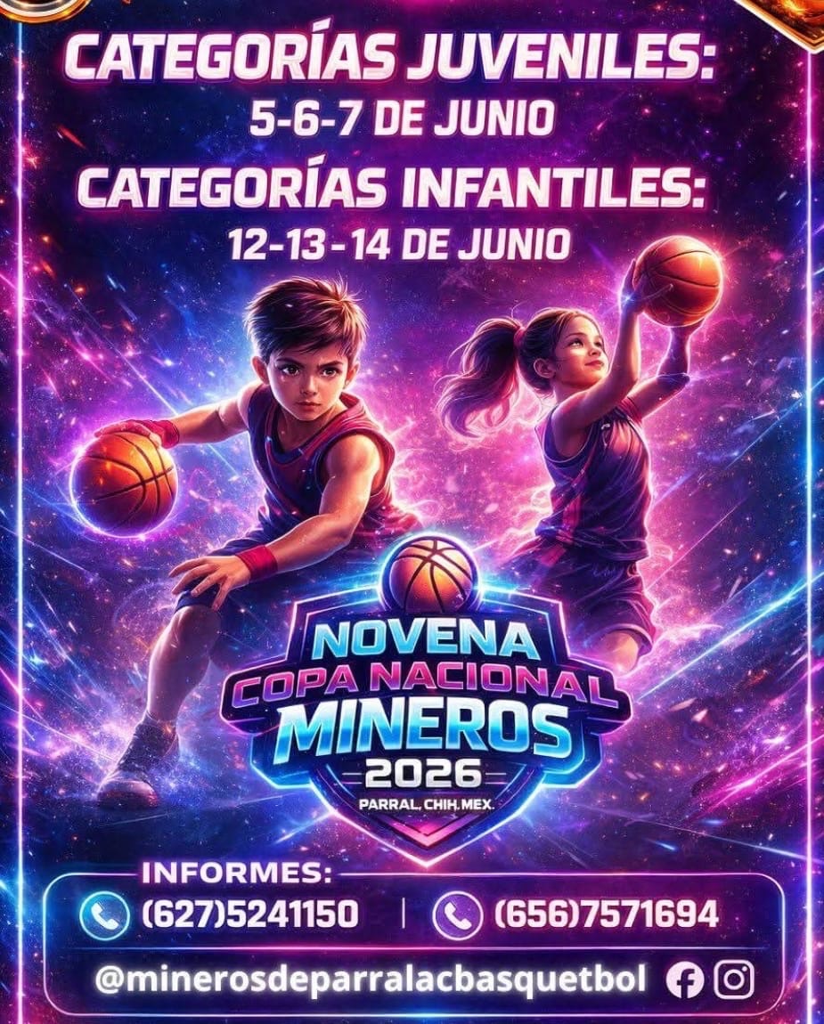 El Club Mineros A.C de Parral, Chihuahua, se declara listo para convertirse nuevamente en el epicentro del talento juvenil e infantil del baloncesto nacional con la celebración de la IX Copa Nacional Mineros de Basquetbol 2026, evento que reunirá a equipos de distintas partes del estado y país en una auténtica fiesta deportiva del deporte ráfaga.
