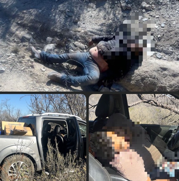 Permanecen sin identificar los cuerpos de los 2 ejecutados esta mañana en la carretera vía corta a Chihuahua entre Zaragoza y Satevó; uno se encontrado dentro de una camioneta pickup y el otro a unos metros.