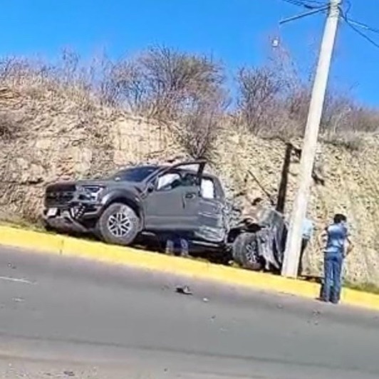 De acuerdo con los primeros informes, una camioneta pickup marca Ford, línea Raptor, color gris, de modelo reciente, terminó sobre la banqueta tras el impacto, presentando daños considerables en la parte frontal.