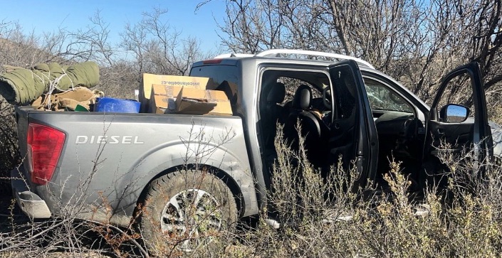 En la caja de la camioneta se encontraron también diversos artefactos como pecheras y un dron de video, lo cual fue asegurado para su investigación por parte de la FGE.