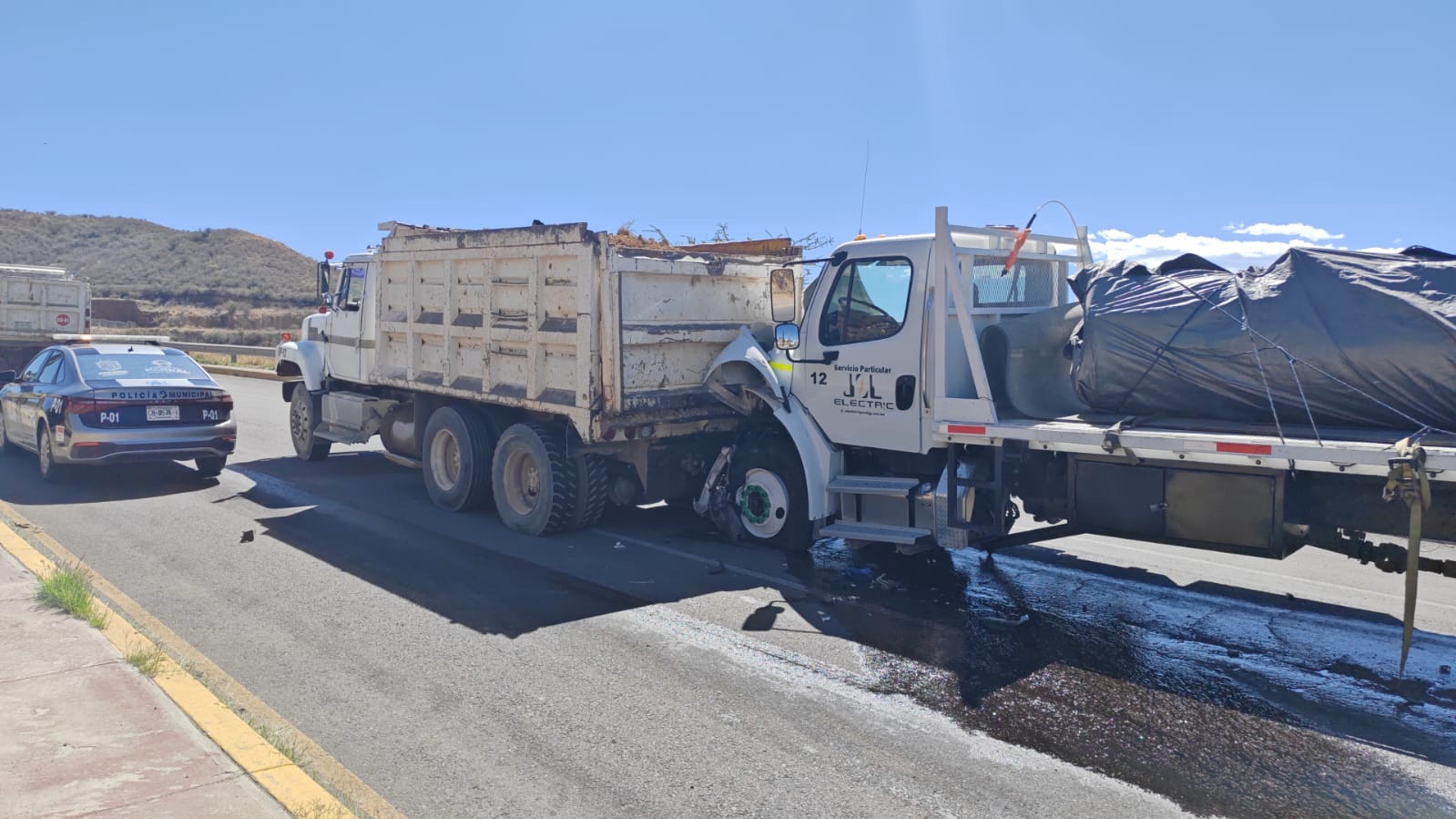 Un aparatoso choque pot alcance en la carretera vía corta entre un dompe y un camión de carga, dejó como saldo a un hombre lesionado y daños totales en una de las unidades.
