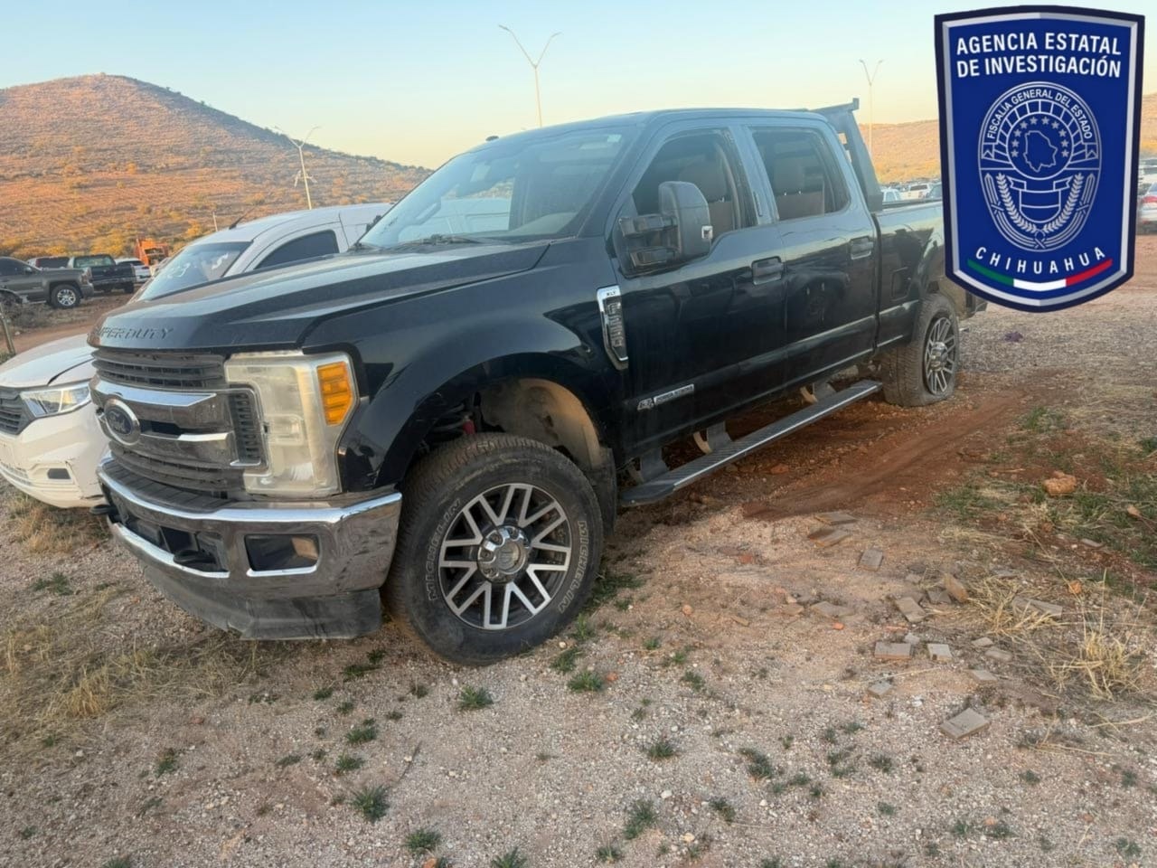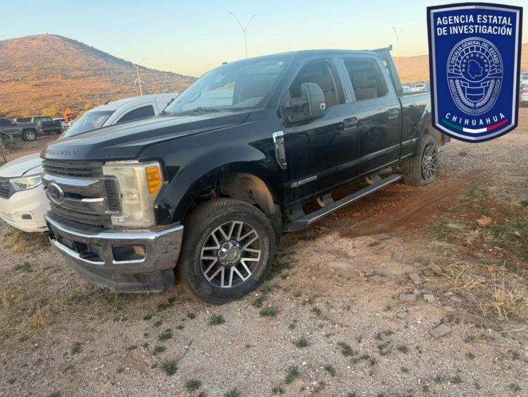 Elementos de la Agencia Estatal de Investigación (AEI) adscritos a la Fiscalía de Distrito Zona Sur, recuperaron una camioneta Ford, línea F250, modelo 2017, de color negro, reportada como robada el 23 de junio de 2024, en la carretera Chihuahua- Satevó.
