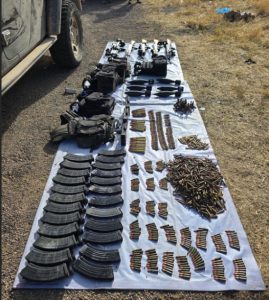 Durante el despliegue operativo, las fuerzas federales localizaron y aseguraron: fue el siguente5 armas largas, 35 cargadores, 1,359 cartuchos útiles, 6 contenedores de plástico con características similares a granadas y equipo táctico diverso.
