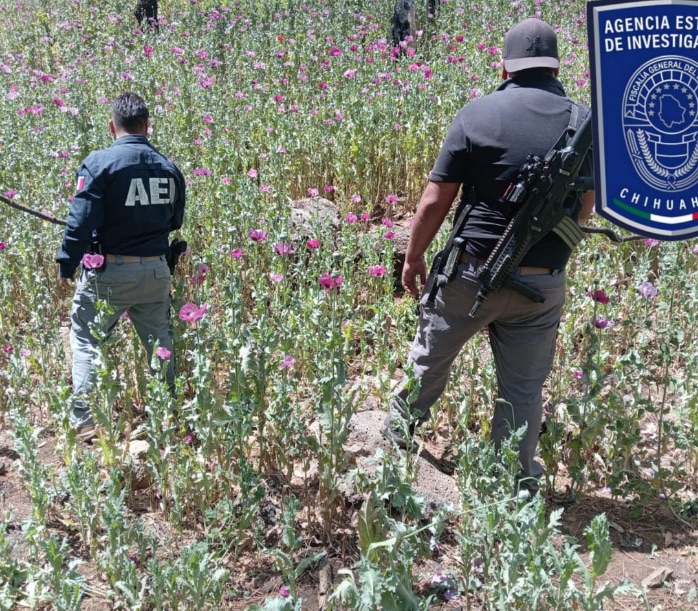 Como resultado de las acciones de seguridad implementadas en la región sur de la entidad, elementos de la Agencia Estatal de Investigación (AEI) localizaron y destruyeron un sembradío de amapola en el lugar conocido como Arroyo de Mesa Lisa, sección de Baborigame, municipio de Guadalupe y Calvo.