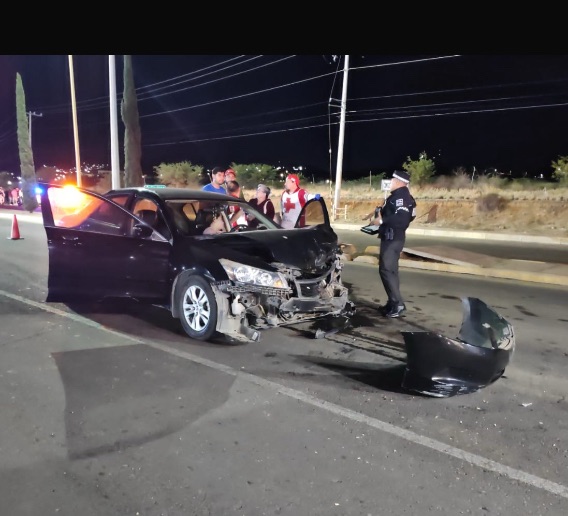 El percance se dio en dirección de los campos de béisbol a las letras de bienvenidos a Parral, siendo el auto tipo sedan el que impactó a la Ford Edge en la parte trasera, provocando la pérdida de control del la unidad que terminó brincando el camellón y quedando en el sentido opuesto a su circulación.