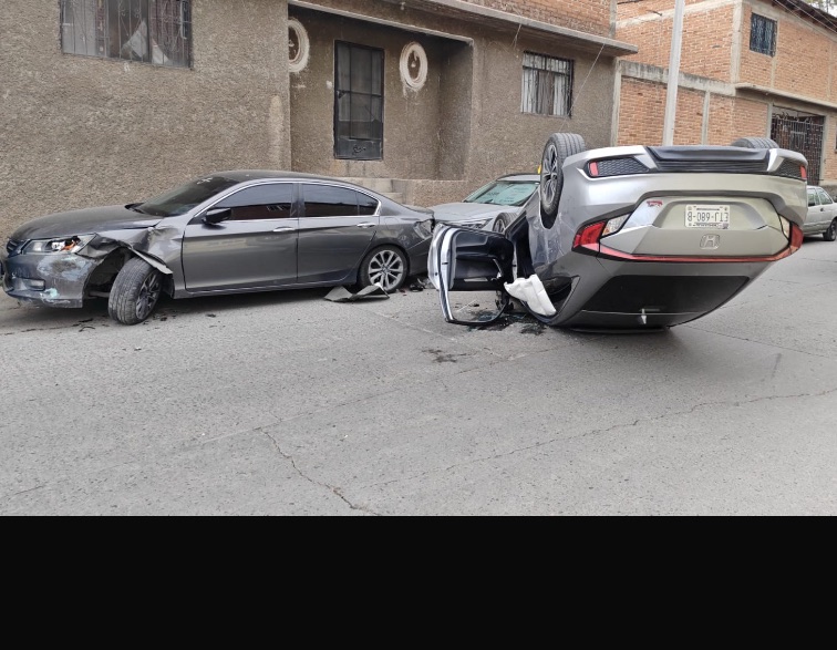 Varios jóvenes en estado de ebriedad y ‘amanecidos’, terminando volcando luego de un choque contra varios vehículos en calles de la colonia Juárez; el conductor fue detenido.