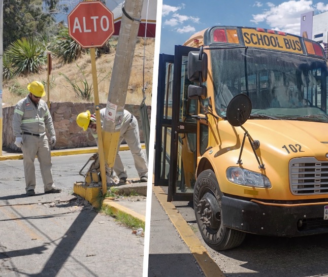 • Autobús escolar choca contra poste de la CFE abajo de la presidencia municipal