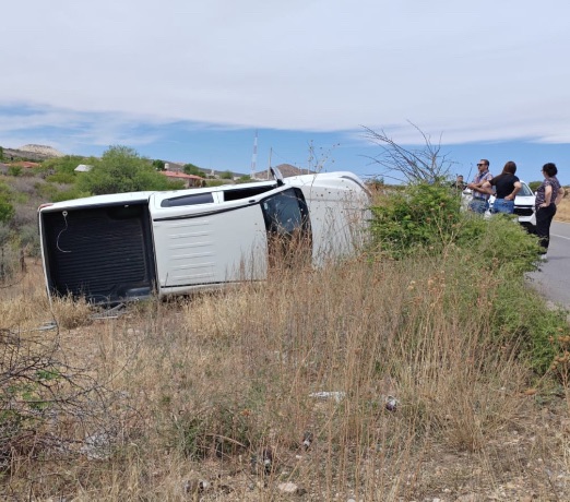 Un conductor volcó en su camioneta pickup cuando circulaba sobre la carretera de Parral a Jiménez, cerca del Cereso; afortunadamente hubo solo daños materiales.