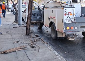 Un conductor chocó contra un poste en la calle Zaragoza y lo derribó desde su base, dejando parte del sector...