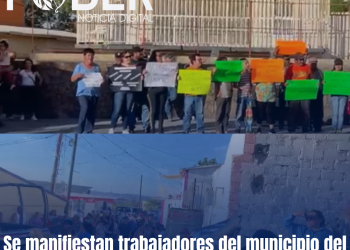 Se manifiestan trabajadores del ayuntamiento de San Francisco del Oro, con pancartas y al grito de “Fuera Huerta” o “Huerta...